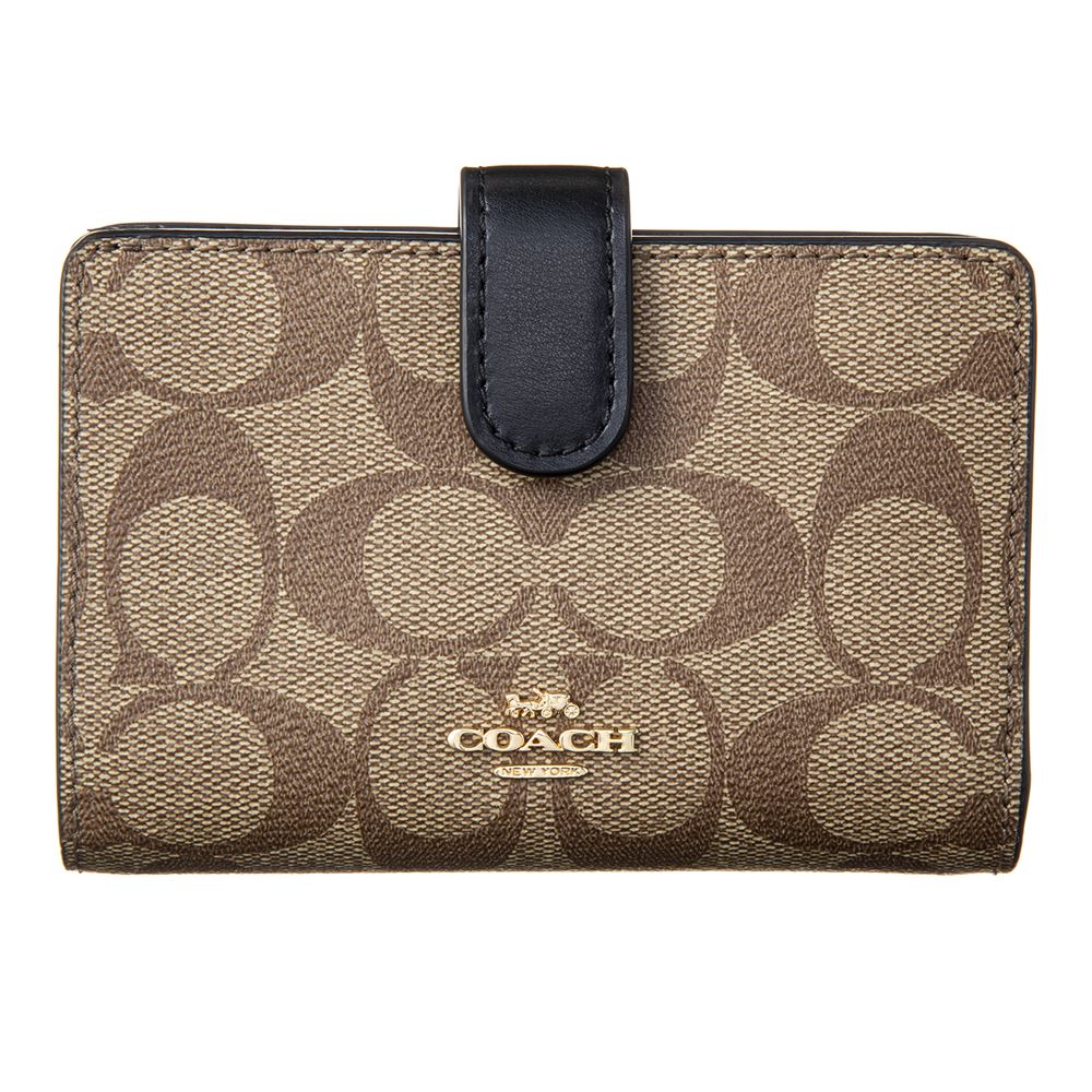 【送料無料】 F23553 IMCBI コーチ COACH 二つ折り財布 カーキ×ブラック ラグジュアリー シグネチャー PVC ミディアム アウトレット