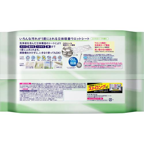 お店TOP>日用品>掃除用品>住居用 掃除用品>ハンディワイパー 取替シート>クイックルワイパー 立体吸着 ウエットシート シトラスハーブの香り (32枚入)【クイックルワイパー 立体吸着 ウエットシート シトラスハーブの香りの商品詳細】●掃除機・雑巾がけが1度に!●いろんな汚れが1度にとれる立体吸着ウエットシート。