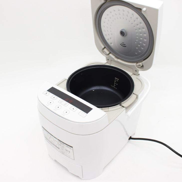 仕様詳細 サイズ・容量商品サイズ:約 W28.0xD41.0xH30.0cm重量:約 6.5kg■生産地:中国・定格:AC100V 50/60Hz・消費電力:700W・コード長さ:約 1.0m・最大炊飯量:約 0.8L(5合)・通常炊飯モード:5合・糖質カットモード:3合・タイプ:マイコン式・予約:1時間〜24時間(10分刻み)・保温:24時間・蒸発水量:70.2g・メニュー:糖質オフ炊飯、白米、タイ米、スチーム、早炊き、再加熱、保温、予約、クリーニング・付属品:しゃもじ、軽量カップ、清掃用ブラシ、取り扱い説明書兼保証書 【スタッフくどぅのおすすめポイント!】 食事改善や糖質制限ダイエットを始めたいけどお米が大好き!そんな方へ・・・。